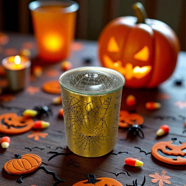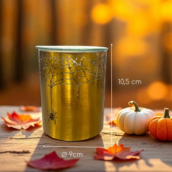 Illuminez votre intérieur avec ce brûle-parfum en métal doré et son motif toile d’araignée découpé au laser. Un diffuseur 3 en 1 : il parfume votre pièce avec des huiles essentielles, des cires parfumées ou du parfum liquide. Ambiance garantie !