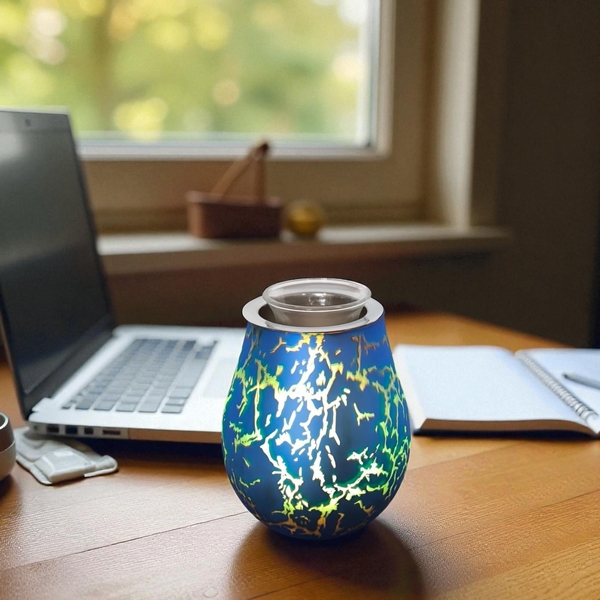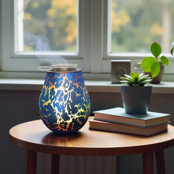- Double fonction : diffuseur et lampe d’ambiance. - Belles finitions et verre bleu. - Eclairage réglable. - Entretien facile. - #Caractéristiques Techniques#- Diamètre: 11 cm.
