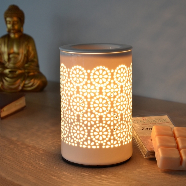 Le Calorya est un diffuseur par chaleur douce très décoratif avec son corps en céramique ajourée. Son utilisation est extrêmement simple et s'adapte aussi bien aux huiles essentielles, aux parfums d'ambiance qu'aux carrés de cire parfumée.
